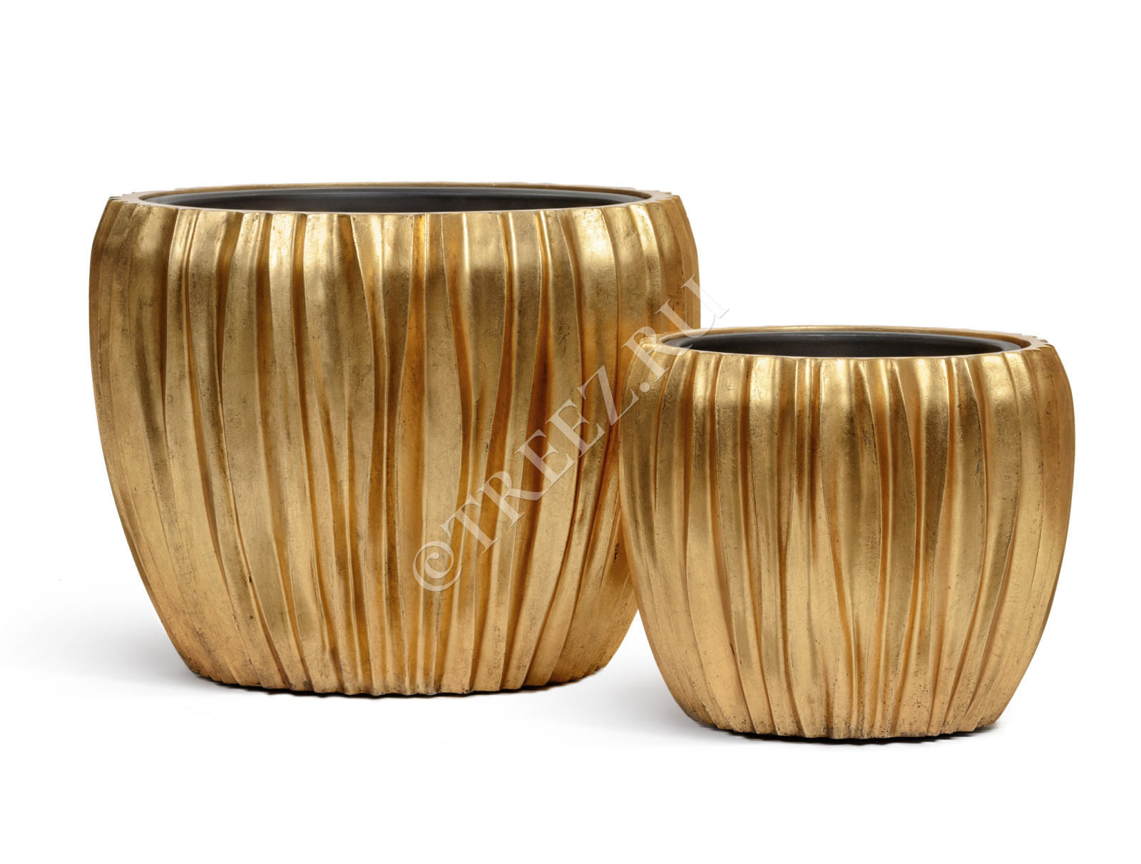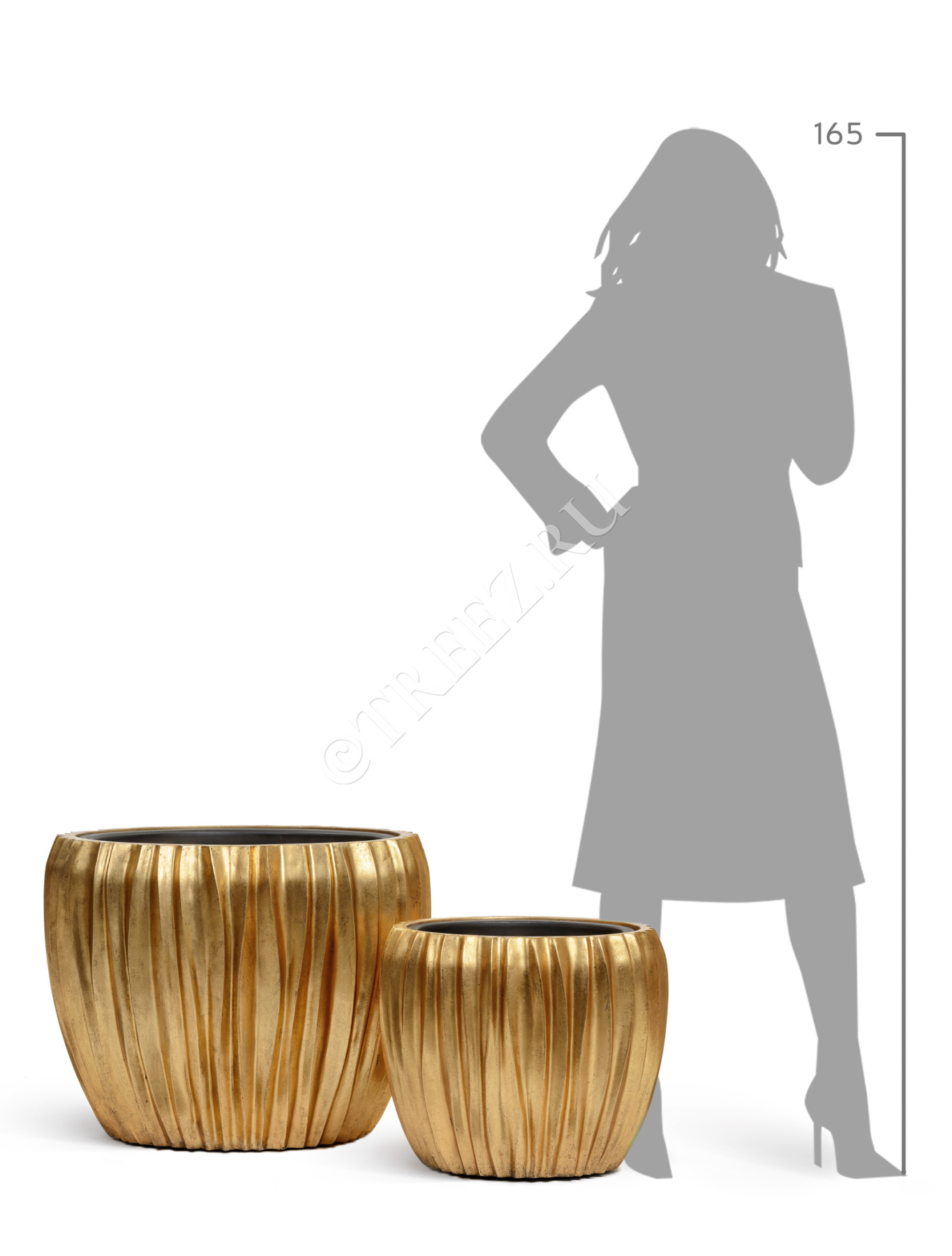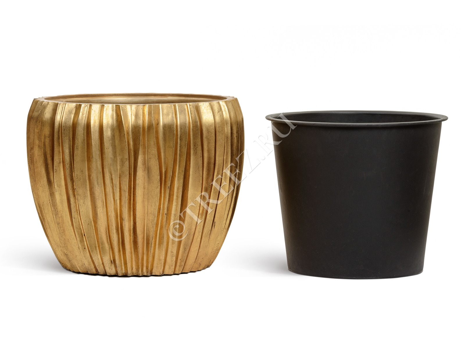 Кашпо TREEZ Effectory - Metal - Высокий конус Giant Design Wave - Сусальное золото