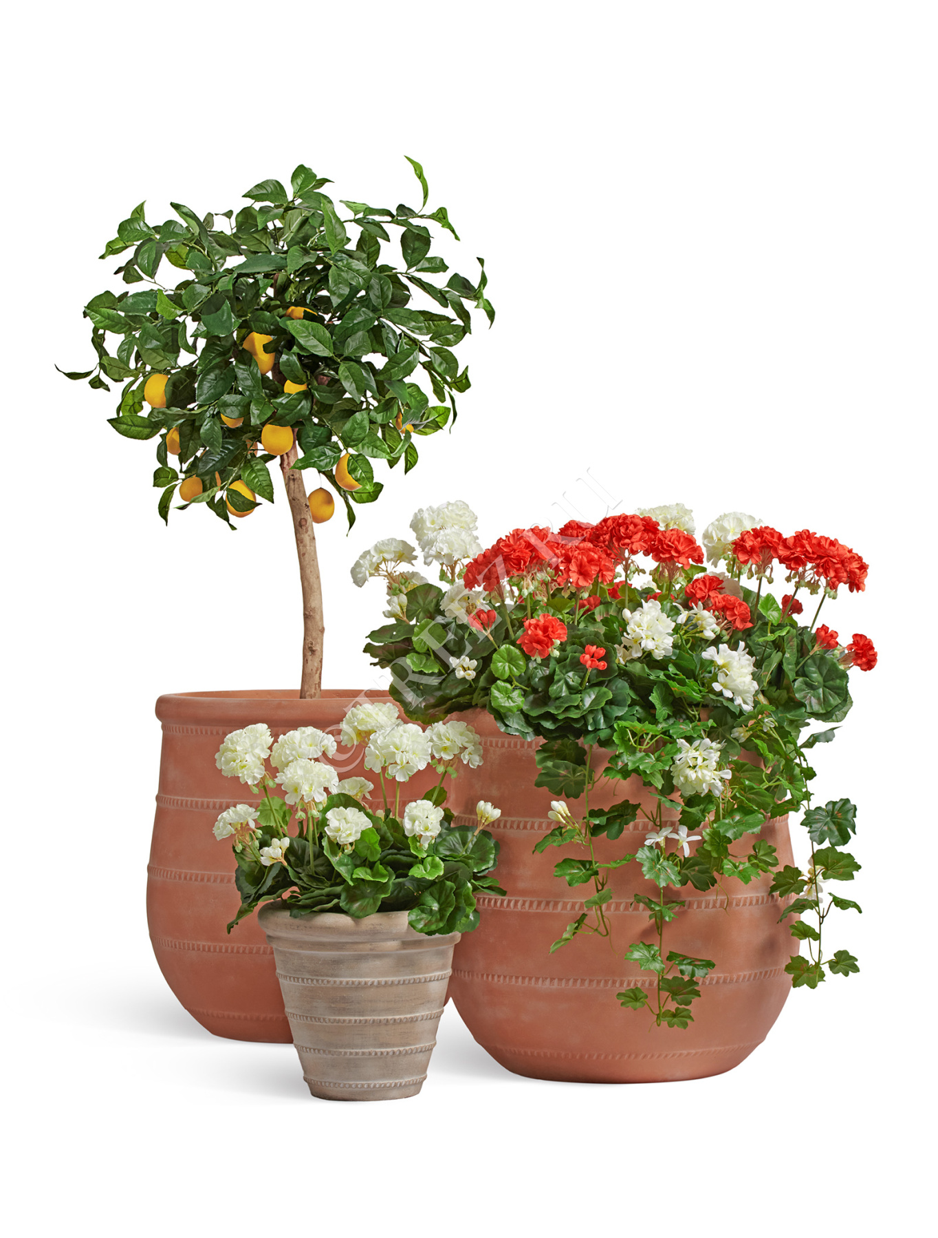 Сет № 34 - Композиция с Лимонным деревом и Геранью в кашпо Treez Ergo Italica
