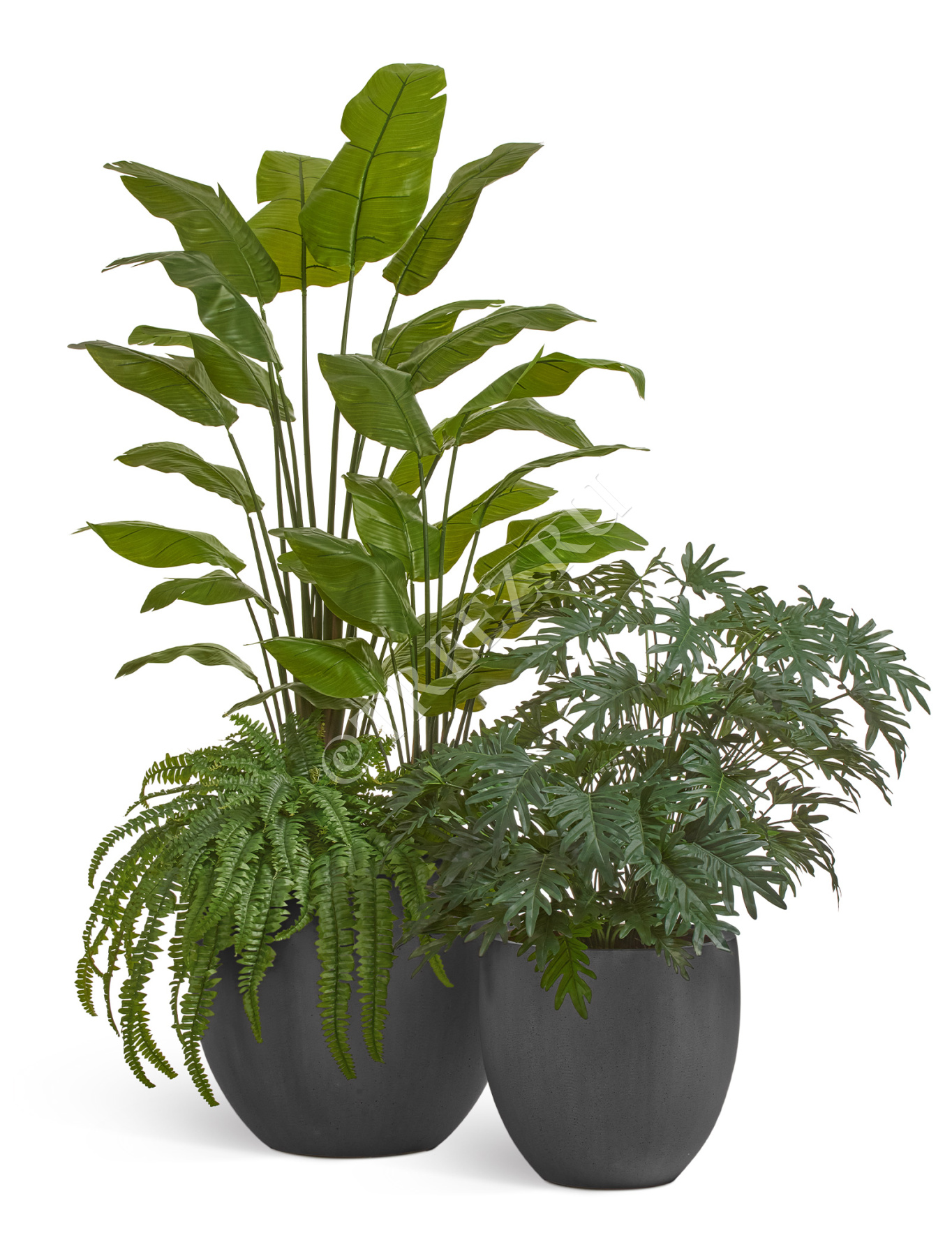 Сет № 36 - Композиция со Стрелициями, Филодендроном и Папоротником в кашпо Treez Effectory Beton